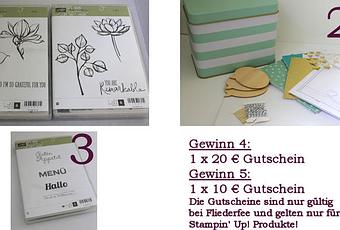 Die Gutscheine beziehen sich ausschließlich auf regulär erhältliche Stampin’ Up! Artikel und können nur bei Fliederfee eingelöst werden.