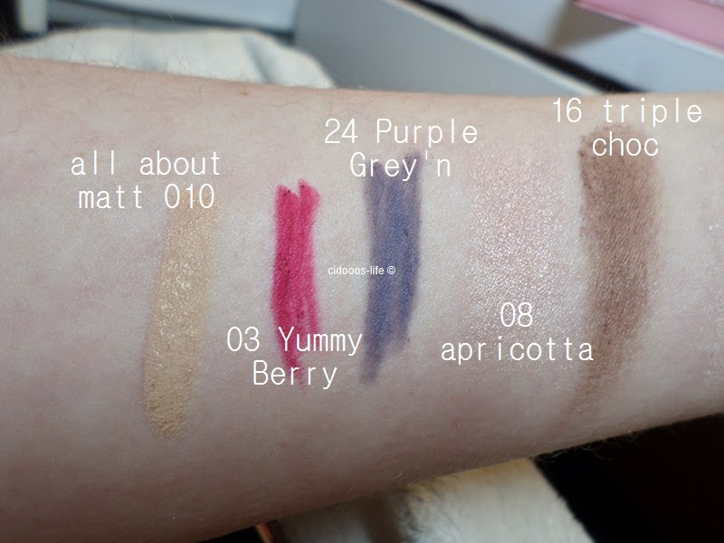 Ihr seht, super pigmentiert ist auch hier nicht viel :( Triple Choc sieht ebenfalls recht fleckig aus.. das fiel aber nur auf dem Bild so aus :)