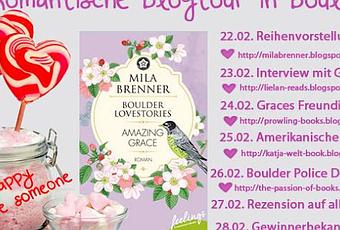 22. Februar ~ Reihenvorstellung bei Mila Brenner23. Februar ~ Interview mit Grace bei Lielan reads24. Februar ~ Graces Freundinnen bei mir *huhu*25. Februar ~ Amerikanische Küche bei Katja's Bücherwelt26. Februar ~ Boulder Police Department bei The Passion of Books~~~~~~~~~~27. Februar ~ Rezensionen auf allen Blogs28. Februar ~ Gewinnerbekannthabe bei Mila BrennerIch wünsche euch viel Glück und einen zauberhaften Mittwoch! ♥