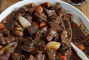 Das Boeuf Bourguignon ist ein klassisches Schmorgericht aus der französischen Küche und ist nach seinen beiden Hauptzutaten Rindfleisch (boeuf) und Burgunderwein (le vin bourguignon) benannt.