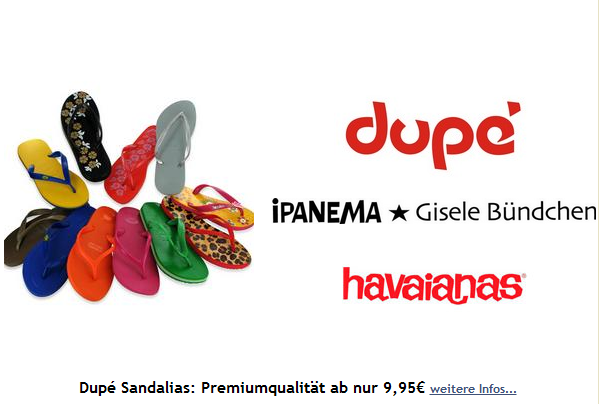 Auf der Shopseite werden die Dupé Zehensandalen IPANEMA gekonnt in Szene gesetzt.