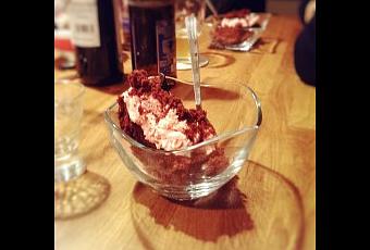 Beim Familienessen war ich für den Nachtisch zuständig. Garnicht mal so einfach, denn die Voraussetzungen waren unter anderem keine Nüsse, keine Wintergewürze, kein Pudding und keine Sachen, die auf warmer Milch basieren. Mehr als nur ein Kompromiss waren die Brownies, die einen besonderen Schliff durch mein Himbeer-Cheescake-Frosting erhalten haben. Ich habe den Brownieteig dafür etwas weniger süß als das Originalrezept gemacht, damit einem der Nachtisch keinen Zuckerschock beschert.