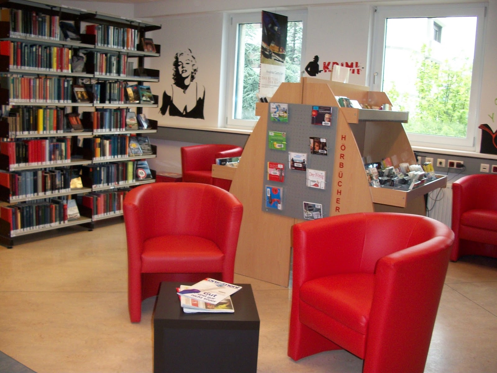 Hörbücher und Krimiecke (links)