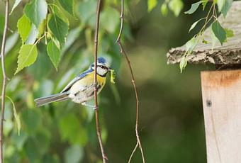 Wenn es um das Thema Buchsbaumzünsler natürliche Feinde geht, dürfen Singvögel wie die Meise nicht fehlen. Diese verfüttern den Schädling gerne an ihre Küken.