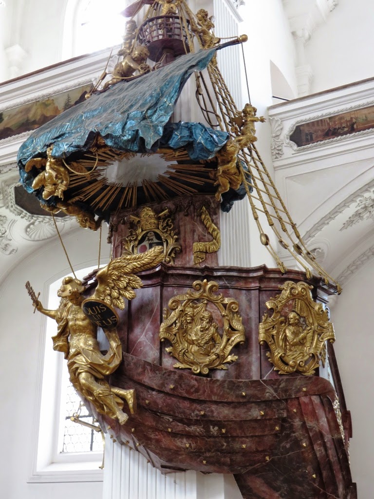Das Schiff am Maibaum ist auch insoweit ein "Ausreißer", als es keinerlei Bezug zu den örtlichen Gewerben hat. Vielmehr ist ein hochberühmtes Ausstattungsstück in der Klosterkirche in der Form eines Schiffsbuges gehalten: Die barocke Kanzel.