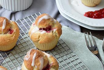 - Die Brioches für 20 Minuten bei 180°C Ober/Unterhitze goldbraun backen lassen. Die Brioches aus der Form nehmen und auf einem Kuchengitter abkühlen lassen.