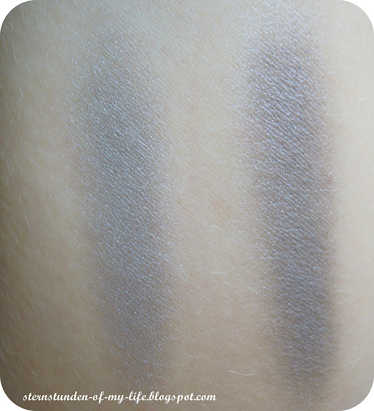 Monolidschatten "250 Swimming With Dolphins" - genau wie Delphinhaut: gräulich mit einem leichten Lila-Schimmer, krümelt ein wenig, seidig im Auftrag, relativ gleichmäßig, mittlere Deckkraft