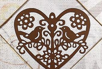 Sonstiges: Stanzteil Herz mit Vögel, Halbperlen