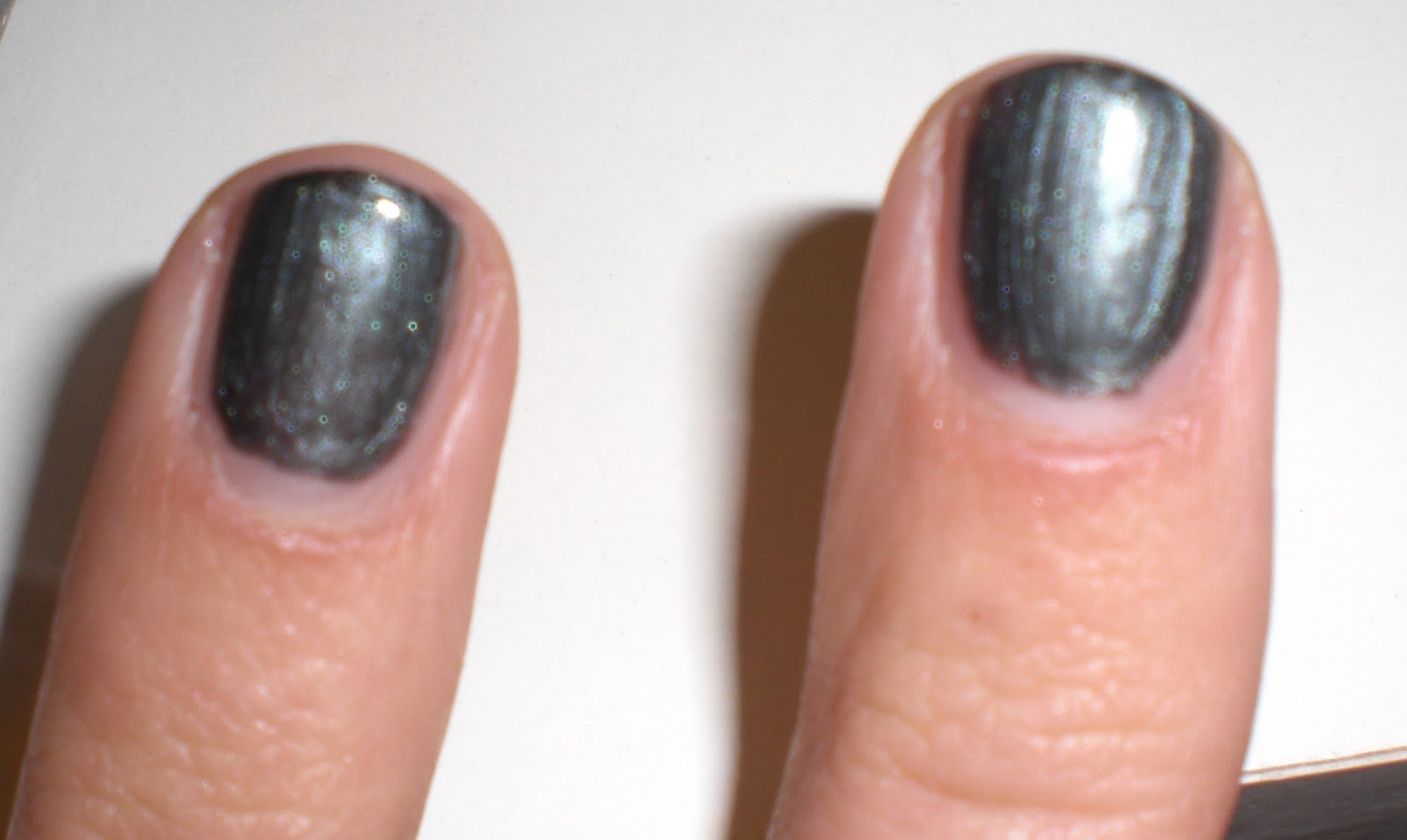 Wie ich mittlerweile gehört habe, scheint Frankfurt ein der ersten Städte zu sein, die den neuen Lack ausgeliefert bekommen hat. Jedenfalls war er in der bekannten Parfumerie Kobberger bereits ausverkauft. Im Douglas war er erst bei dem zweiten Anruf verfügbar. Also habe ich nicht lange gezögert und ihn direkt für mich und eine liebe Bloggerkollegin gekauft und was soll ich sagen. Er ist wunderschön. Je nach Lichteinfall schimmert er mehr Moosgrün oder gräulich.