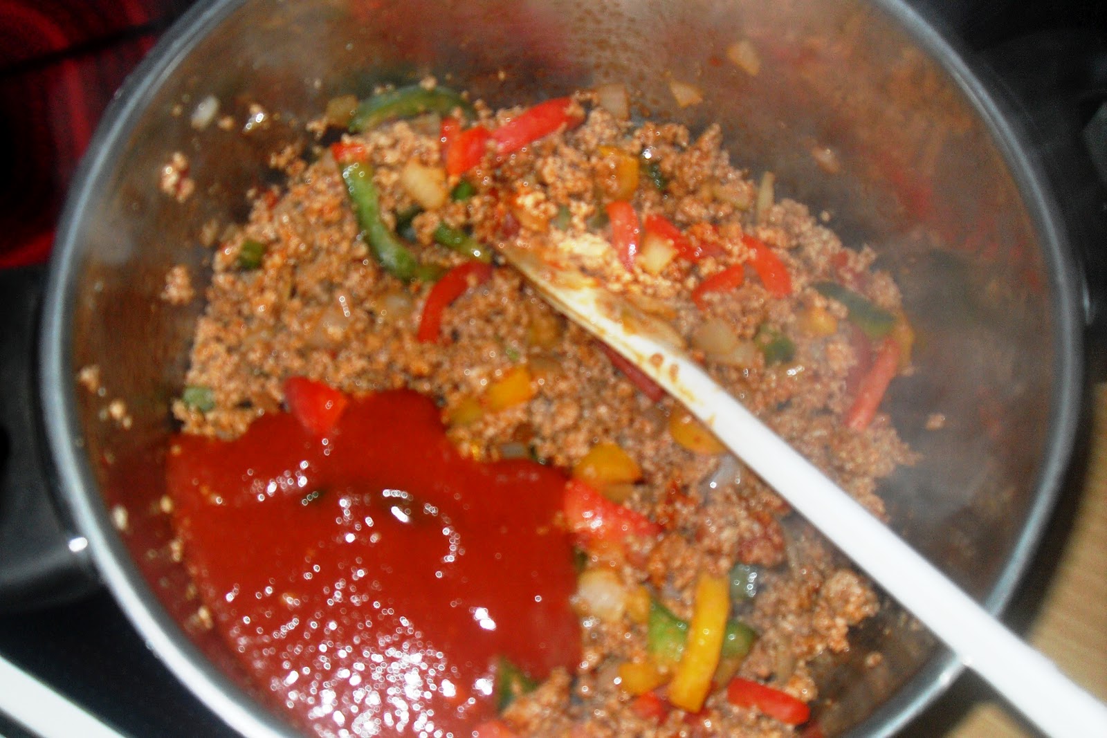 Zutaten:500 g Gehacktes (halb & halb)2 Dosen Kidneybohnen (je 425 ml)1 kleine Dose Mais (212 ml)1 große Zwiebel1,5 Paprikaschoten (bunt gemischt oder nach Geschmack)2 TL gekörnte Brühe250 ml passierte Tomaten200 ml Wasser3 EL TomatenmarkPeperoni klein gehackt (nach Geschmack)1 Knoblauchzehe Salz, Pfeffer, Paprika, Koriander, Kreuzkümmel, Cheyennepfeffer, Oregano, Thymian (oder auch einfach Mexikanische Gewürzmischung)1 Prise Zucker1 EL ÖlZubereitung:Die Kidneybohnen in ein Sieb geben, gut abspülen und abtropfen lassen. Ebenso mit dem Mais verfahren.Das Öl in einem großen Topf erhitzen und das Gehacktes krümelig anbraten.In der Zwischenzeit die Zwiebel schälen und in grobe Würfel (Stückchen) schneiden.