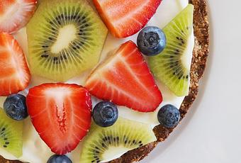 Obst nach Wahl als Belag (ich habe Erdbeeren, Heidelbeeren und Kiwi benutzt)