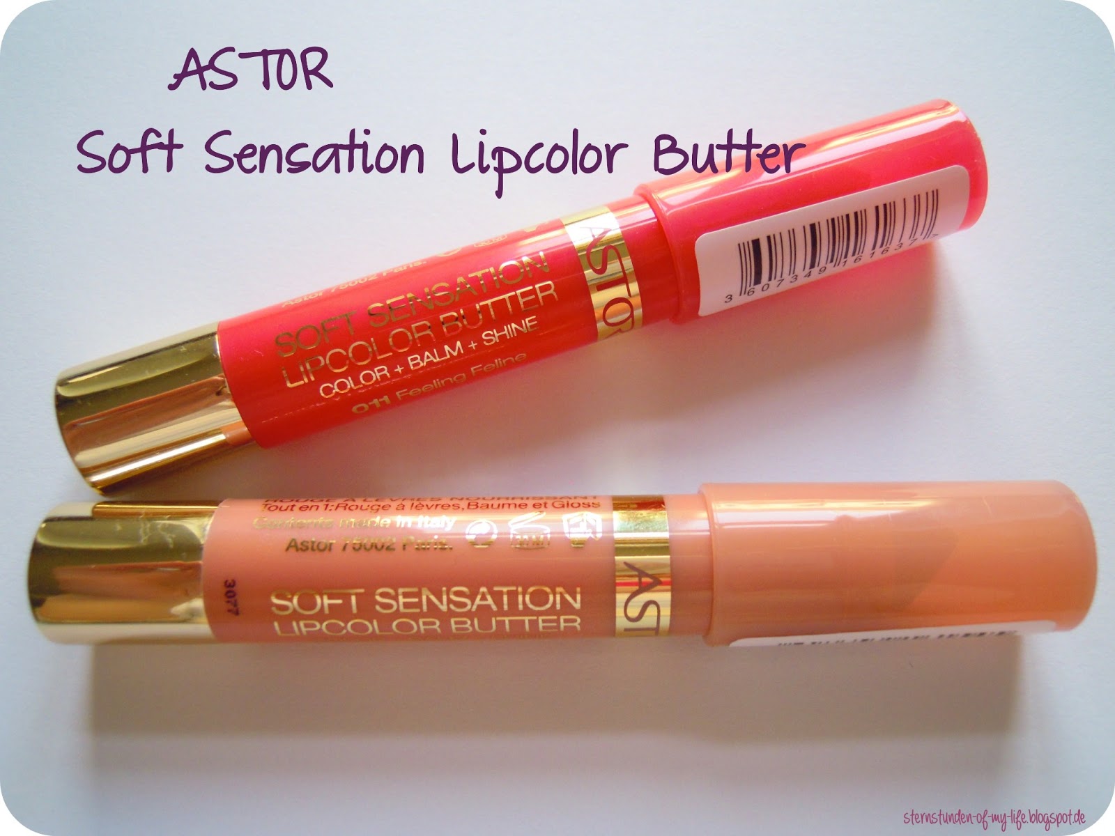 Ich mag ja das Gefühl von Lippenstift auf meinen Lippen nicht, und Lipgloss sieht mir zu "nass" aus. Und dann erzählte Heide, dass die neuen Soft Sensation Lipcolor Butters von Astor alles in einem sind:"Intensive Farbe? Feuchtigkeitsspendende Pflege? Strahlender Glanz? Alles in einem Produkt? Kein Problem! ASTORs neue Soft Sensation Lipcolor Butter vereint die Farbe und Haltbarkeit eines Lippenstifts, die Feuchtigkeitspflege eines Lipbalms und den strahlenden Glanz eines Lipgloss’: Das perfekte All-in-One Produkt für Lippen zum Dahinschmelzen!