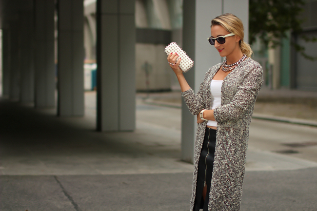 PS.: Ich bin jetzt auch auf Instagram mit dem Usernamen "collectedbykatja" zu finden :-) ...Most people associate cool biker jackets, heavy boots and tight pants with leather. Of course I'm sharing these associations and I really love to wear these things. But leather can do even more. Leather in form of a pencil skirt can be quite elegant - especially combined with a cozy, long knitted cardigan and classy pumps. This pencil skirt is even suitable for office, wearing a white blouse instead of cropped top. - What do you think about leather? How and when do you wear leather?