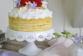 - Nehmt nun einen Tortenring und schichtet die Crepetorte. - Zuerst die erste Lage Crepe, dann etwa 2 EL Creme und wiederum eine Lage Crepe. Verteilt die Creme bis zum Rand, sonst entsteht so eine Art Halbkreis. - Die Torte für 2 Stunden kaltstellen.