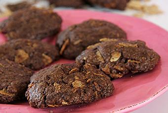 - In einer Rührschüssel die trockenen Zutaten Mehl, Kakao, Salz und Zucker vermischen. Die zimmerwarme Butter in kleinen Stücken und das Ei dazugeben und alles zu einem glatten Teig verkneten. Die Kuvertüre fein hacken und mit den Cornflakes unter den Teig kneten.