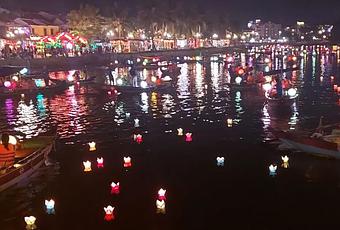Das Licht von Hunderten von Laternen, die in den kleinen Straßen und über Türschwellen schweben, spiegelt sich sanft auf dem ruhigen Wasser des Thu Bon Flusses wider und schafft eine romantische und fast magische Szene. Besonders während der Festivals wird die Altstadt von Hoi An lebendiger denn je, mit traditioneller Musik, kulturellen Darbietungen und Ständen, die eine Vielzahl von Handwerkskunst, traditioneller Kleidung und lokalen Spezialitäten verkaufen.