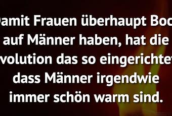 Auf Facebook teilen Vorige Folgende Damit Frauen überhaupt Bock auf Männer haben,... Autor des Artikels : istdaslustig Zum Original-Artikel Damit Frauen überhaupt Bock auf Männer haben, hat die Evolution das so eingerichtet, dass Männer irgendwie immer schön warm sind. Hier geht es zum Artikel Mehr Lustiges auf www.istdaslustig.de Auf Facebook teilen Vorige Folgende Das könnte Ihnen gefallen Mehr