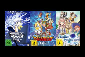 Atelier Escha & Logy erscheint ebenfalls am 15. Mai in einem Sammelschuber mit Silberglanzfolie, welcher auf 2.000 DVD Exemplare und 3.000 Blu-ray Exemplare limitiert ist. Dazu gibt es noch Booklets, Postkarten und Wendecover. Die folgenden zwei Volumes sollen voraussichtlich im August und Oktober released werden.