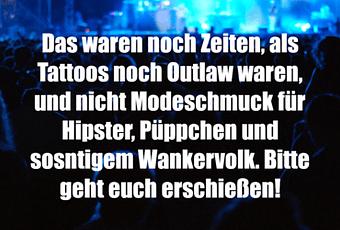 Auf Facebook teilen Vorige Folgende Das waren noch Zeiten, als Tattoos noch Outlaw... Autor des Artikels : istdaslustig Zum Original-Artikel Das waren noch Zeiten, als Tattoos noch Outlaw waren, und nicht Modeschmuck für Hipster, Püppchen und sosntigem Wankervolk. Bitte geht euch erschießen! Hier geht es zum Artikel Mehr Lustiges auf www.istdaslustig.de Auf Facebook teilen Vorige Folgende Das könnte Ihnen gefallen Mehr