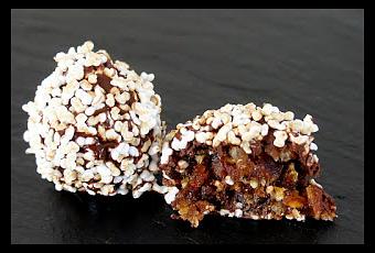 Abwandlung:Auch sehr lecker, wenn man die geformten Kugeln in >>geschmolzene Schokolade<< taucht und abschießend in gepufftem Amaranth wälzt.