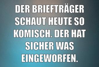 Auf Facebook teilen Vorige Folgende DER BRIEFTRÄGER SCHAUT HEUTE SO KOMISCH. DER... Autor des Artikels : istdaslustig Zum Original-Artikel DER BRIEFTRÄGER SCHAUT HEUTE SO KOMISCH. DER HAT SICHER WAS EINGEWORFEN. Hier geht es zum Artikel Mehr Lustiges auf www.istdaslustig.de Auf Facebook teilen Vorige Folgende Das könnte Ihnen gefallen Mehr