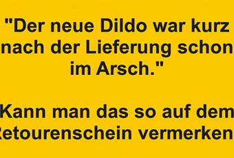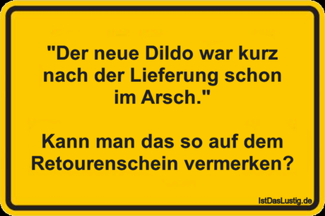 Auf Facebook teilen Vorige Folgende "Der neue Dildo war kurz nach der Lieferung... Autor des Artikels : istdaslustig Zum Original-Artikel "Der neue Dildo war kurz nach der Lieferung schon im Arsch." Kann man das so auf dem Retourenschein vermerken? Hier geht es zum Artikel Mehr Lustiges auf www.istdaslustig.de Auf Facebook teilen Vorige Folgende Das könnte Ihnen gefallen Mehr