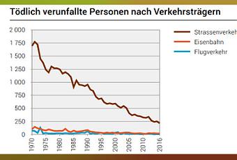 Kürzlich wurden die neuste Verkehrsunfall-Statistik veröffentlicht. Bei Verkehrsunfällen starben im letzten Jahr in der Schweiz noch 216 Personen. In den 1970-er Jahren waren es noch fast 10-mal so viele.