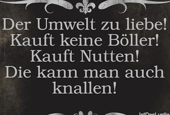 Auf Facebook teilen Vorige Folgende Der Umwelt zu liebe! Kauft keine Böller! Kauft... Autor des Artikels : istdaslustig Zum Original-Artikel Der Umwelt zu liebe! Kauft keine Böller! Kauft Nutten! Die kann man auch knallen! Hier geht es zum Artikel Mehr Lustiges auf www.istdaslustig.de Auf Facebook teilen Vorige Folgende Das könnte Ihnen gefallen Mehr