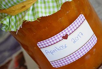 Vor ein paar Wochen bekam ich von einer ehemaligen Nachbarin, die an mich und den durch die Gäste großen Marmeladenbedarf dachte, ein Rezept für eine Aprikosenkonfitüre. Diese kommt angeblich sehr gut an. Es war eine Kopie aus der "Essen&Trinken 2015" eines Artikels mit der Überschrift "Sonne im Glas". Hach, davon kann man ja heute eher träumen... der Sommer scheint vorbei. Aber durch Einnachen kann man sich ja wirklich einen Teil des Sommers und der Sonne konservieren, das ist toll.