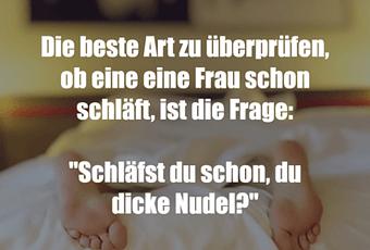 Auf Facebook teilen Vorige Folgende Die beste Art zu überprüfen, ob eine eine Frau... Autor des Artikels : istdaslustig Zum Original-Artikel Die beste Art zu überprüfen, ob eine eine Frau schon schläft, ist die Frage: "Schläfst du schon, du dicke Nudel?" Hier geht es zum Artikel Mehr Lustiges auf www.istdaslustig.de Auf Facebook teilen Vorige Folgende Das könnte Ihnen gefallen Mehr