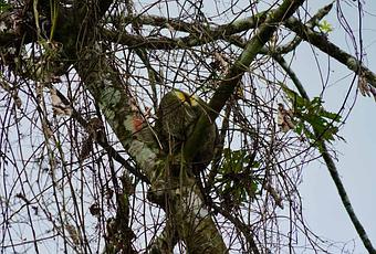Nach nicht einmal zwei Kilometern legte der Busfahrer plötzlich eine Vollbremsung hin. Auf einem Baum in etwa zehn Meter Höhe schlief ein Faultier. Unsere Gruppe von 17 Personen plus Guides stürzte sich todesmutig über die Landstraße und nicht wenige Autofahrer mussten bremsen, um nicht einen unachtsamen Touristen zu überfahren.