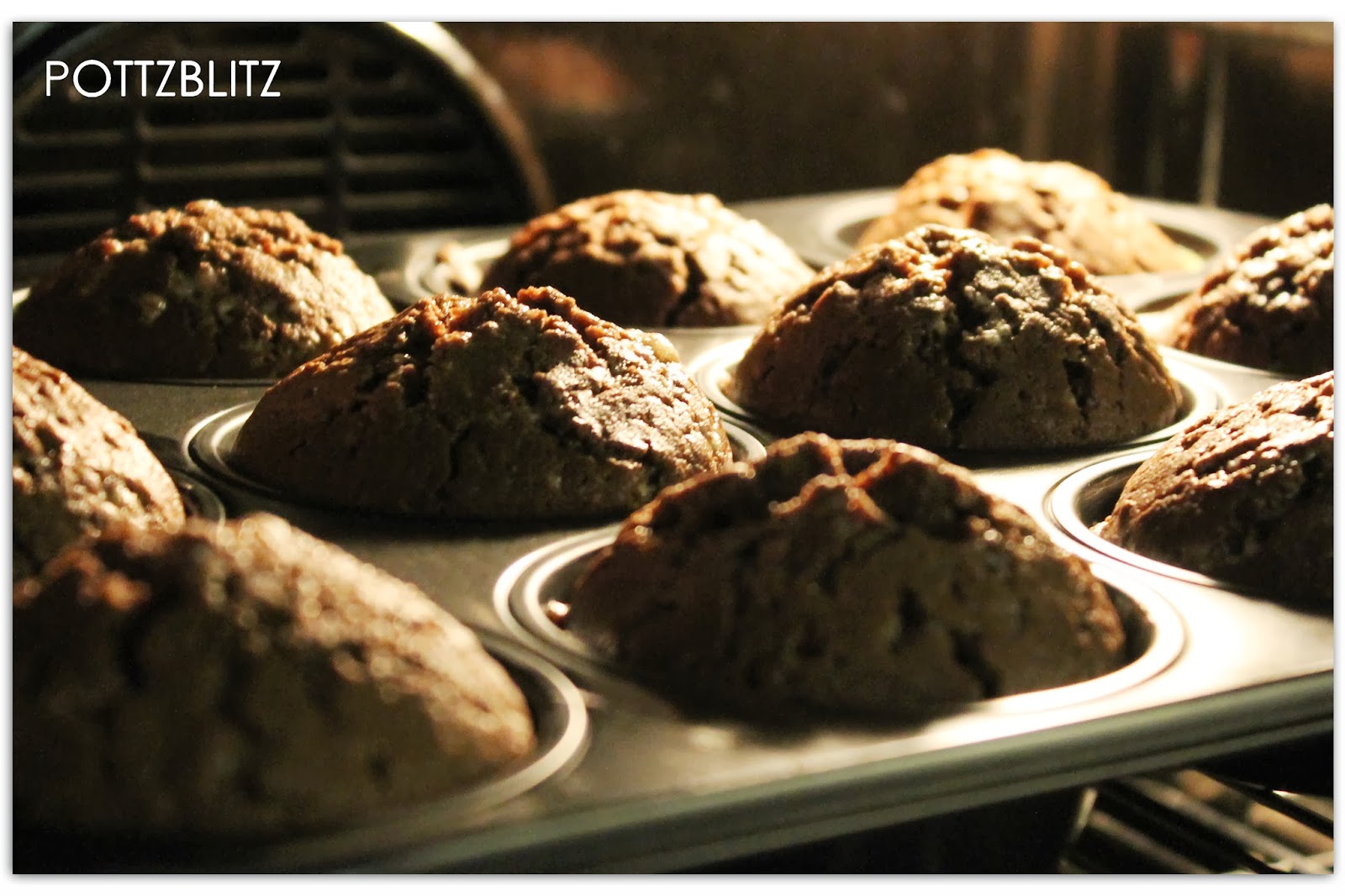 Nun Mehl, Kakao- und Backpulver, Zimt, Zucker und die gehackte Schokolade in einer Schüssel vermischen. Die Eier in einer kleinen Schüssel verquirlen und dann das Öl unterrühren bis alles gut vermischt ist. Zum Schluss die Milch unterrühren. Danach die Flüssigkeit zur Mehl-Mischung geben und nur kurz (am besten mit einer Gabel o. ä.) verrühren.Wichtig: Zu langes Rühren macht den Teig schnell zäh!