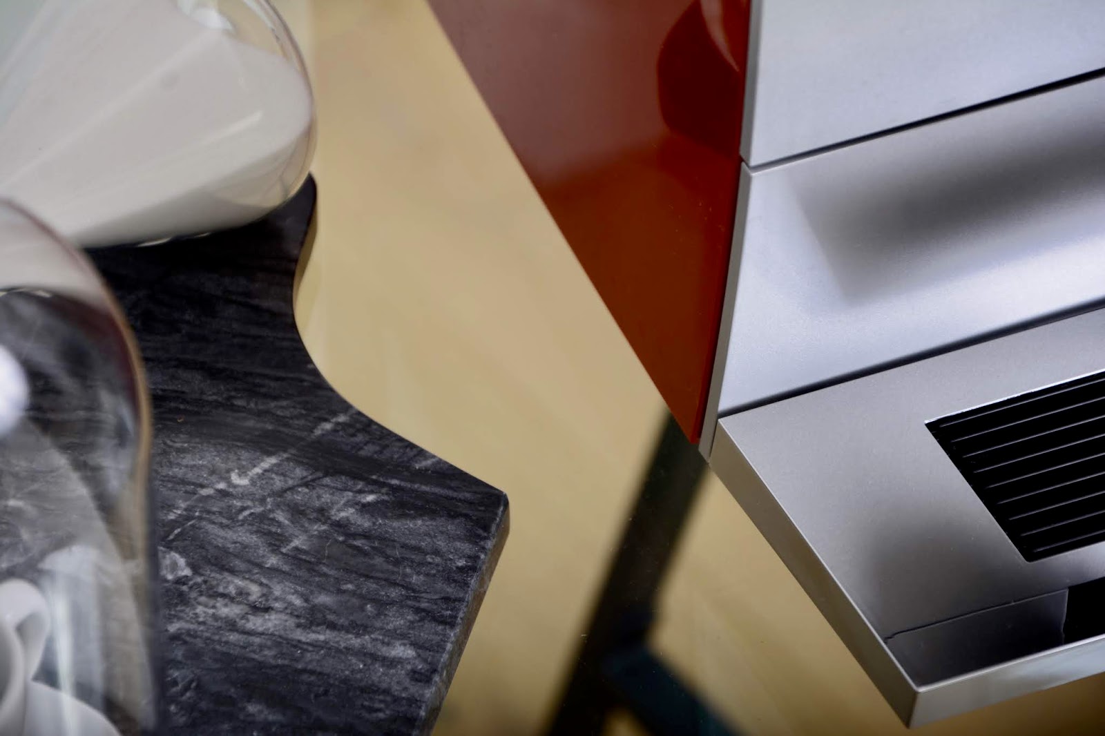 Klare und moderne Linien halten sich bewusst im Hintergrund, denn der Wassertank ist ein wirkliches Statement. Inspiriert von Kristallglaskaraffen ist der Tank auf das Wesentliche reduziert. Kein störender Griff oder längliche Form, die das Nachfüllen unnötig erschwert. Dieses Design Ziel wurde auch bei den Bedienelementen fortgesetzt. Ein übersichtliches Display und 4 Tasten zeigen die wichtigsten Informationen und lassen Platz für klare Abbildungen von den Kaffeekreationen.