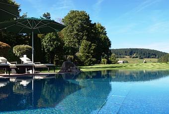 Weitab von befahrenen Straßen und störendem Lärm haben Gäste des Parkhotels Flora den Schwarzwald im Blick. Am beliebten Schluchsee gelegen, verfügt das Haus neben einem Indoor- auch über einen ganz neuen Außenpool. Da es in der Region auch zur warmen Jahreszeit durchaus einmal kühl werden kann, ist das Becken beheizt.