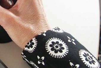 Arbeit am Computer mit Maus und Tastatur fordert seine Opfer. Oder wie geht es Ihnen? Mir jedenfalls tut nach kurzer Zeit schon der Handballen weh. Daher habe ich mir aus einem kleinen Stück Reststoff und einer dicken, doppelt gelegten Vlieseinlage, kurzerhand einen praktischen und, wie ich finde, auch dekorativen Handballenschutz genäht. Kleiner Aufwand – große Wirkung.