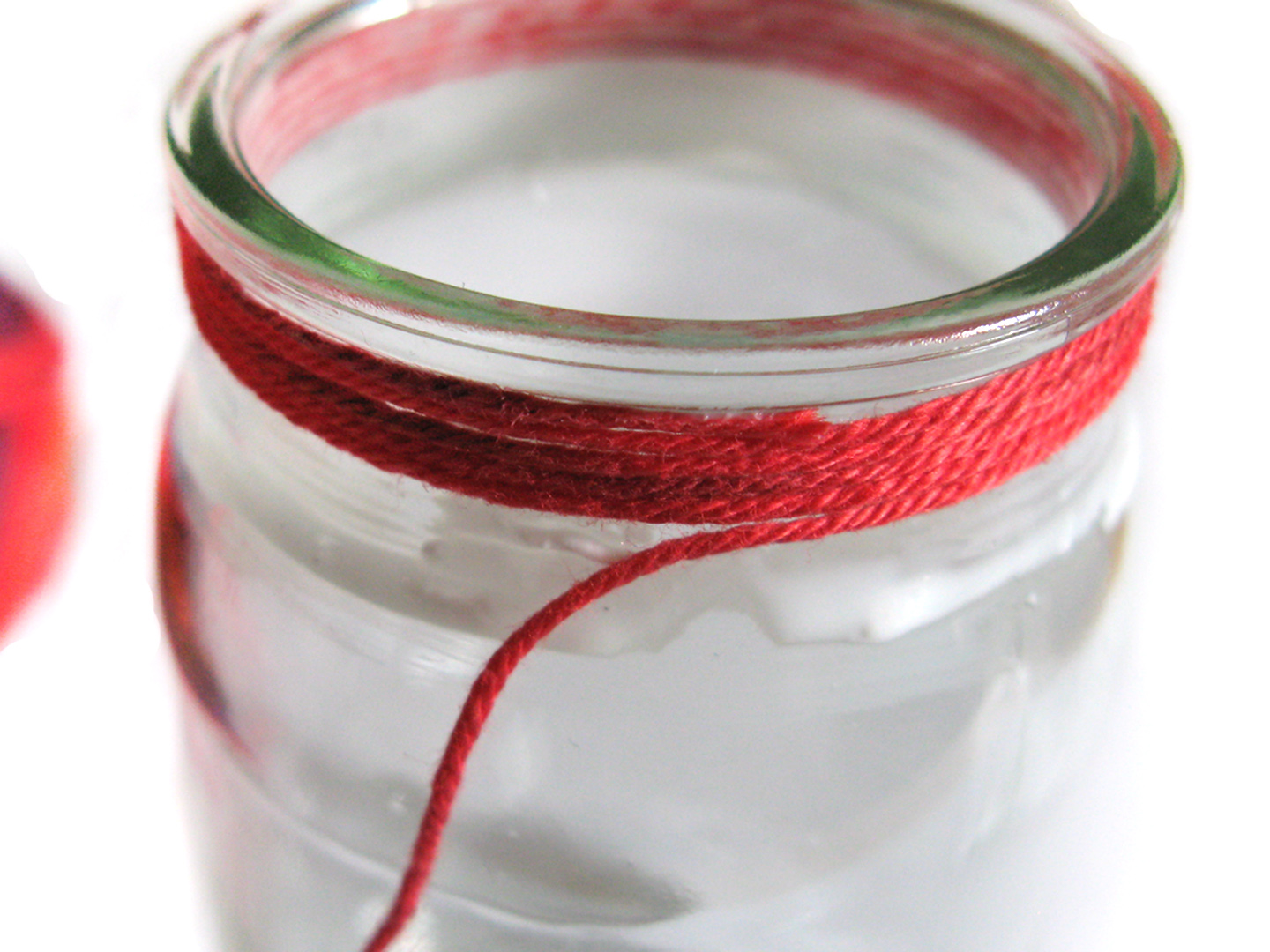 Vierter SchrittWenn ihr unten angekommen seid, dann schneidet ihr die Wolle einfach ab und achtet darauf, dass das Ende gut am Glas klebt.