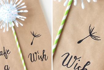 Um Pusteblumen handelt ebenfalls dieser Beitrag. Denn wir basteln eine Pusteblume auf das Geschenk. Geht ganz leicht, nur müssen ein paar Ohrstäbchen dran glauben ;D Leider kann man daran nicht pusten… Na ja, also pusten schon, nur fliegt da nichts durch die Gegend… Obwohl, ich glaube, dass auch keiner von uns möchte, dass Ohrstäbchen durch die Gegend fliegen, haha