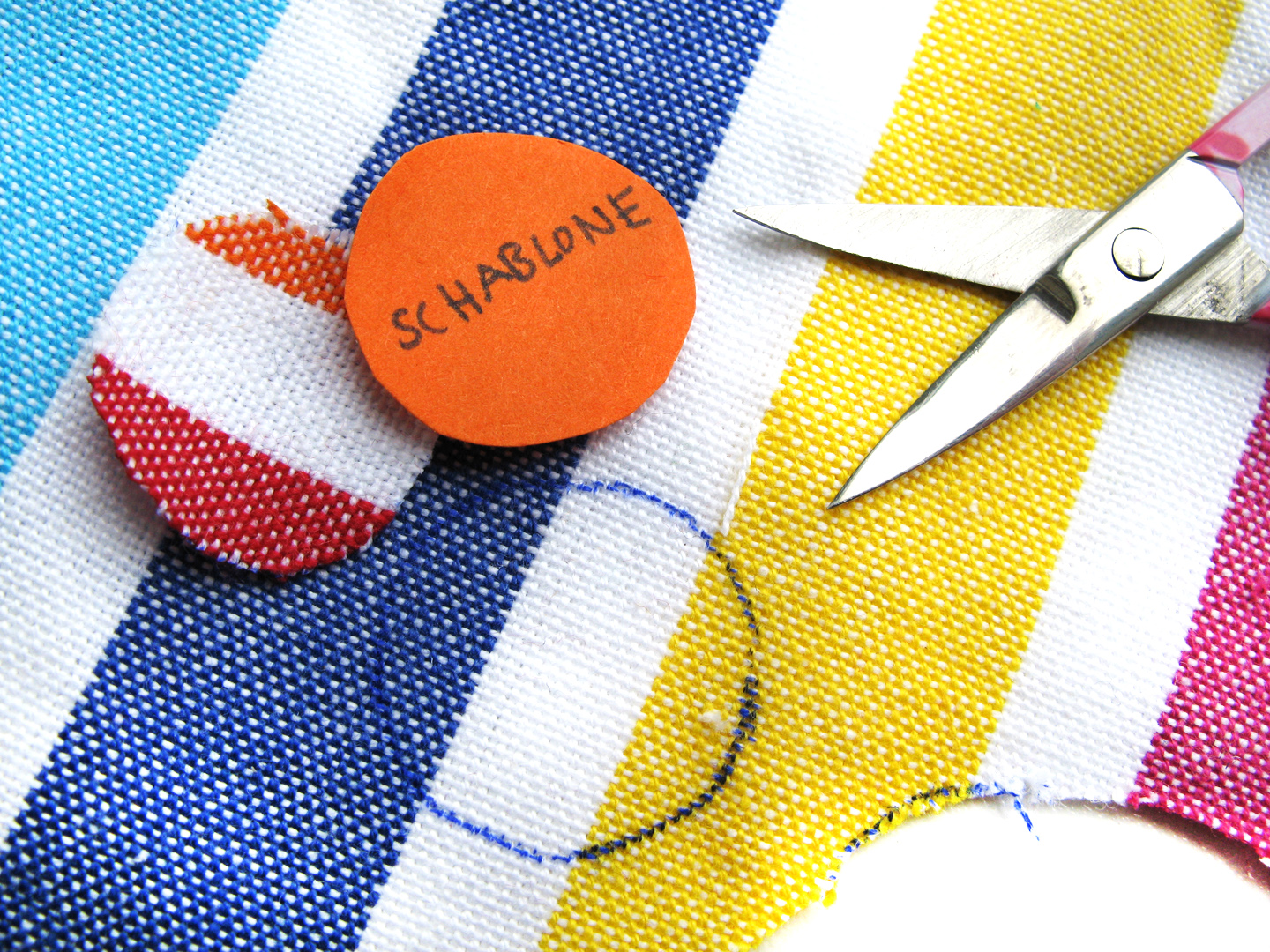 Schneide aus Papier einen kleinen Kreis aus: das wird Deine Schablone für den Stoff. Die Größe solltest Du so wählen, dass der Kreis gut auf den Kronkorken passt und nicht zu groß ist!