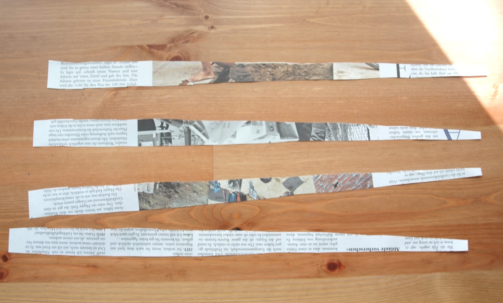 Als nächstes die Streifen ausschneiden. Legt einfach mehrere Blätter Zeitungspapier übereinander, dann geht es schneller.