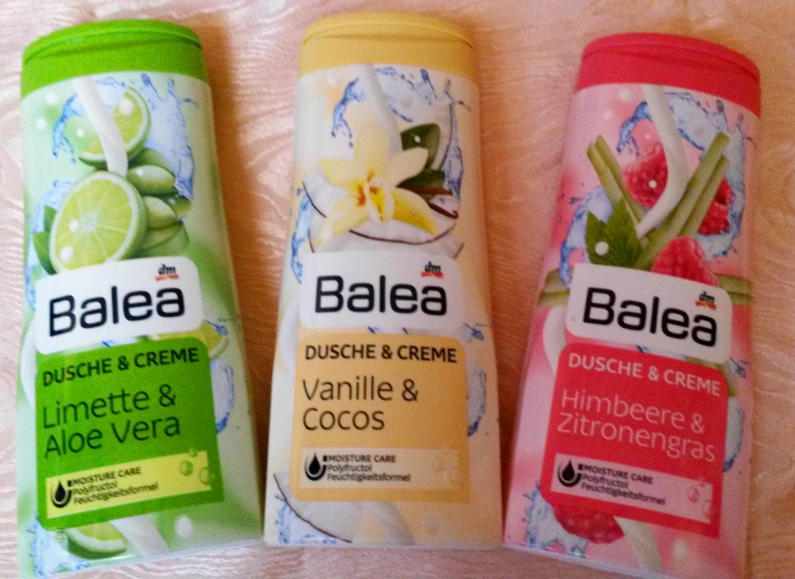 Balea Dusche & Creme Limette & Aloe Vera, Vanille & Cocos und Himbeere & ZitronengrasAlle riechen einfach toll und für diesen Preis kann man da echt nicht vorbei laufen. Die Pflege geht eigentlich wenn man nicht so trockene haut hat. Nur am besten eincremen nach dem Duschen.Kostet um die 60 Cent.