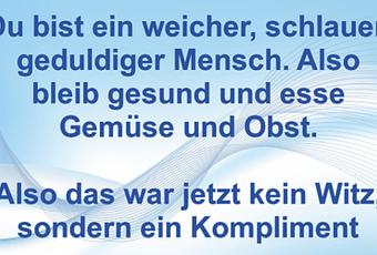 Auf Facebook teilen Vorige Folgende Du bist ein weicher, schlauer, geduldiger... Autor des Artikels : istdaslustig Zum Original-Artikel Du bist ein weicher, schlauer, geduldiger Mensch. Also bleib gesund und esse Gemüse und Obst. Also das war jetzt kein Witz, sondern ein Kompliment Hier geht es zum Artikel Mehr Lustiges auf www.istdaslustig.de Auf Facebook teilen Vorige Folgende Das könnte Ihnen gefallen Mehr