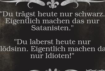 Auf Facebook teilen Vorige Folgende "Du trägst heute nur schwarz. Eigentlich machen... Autor des Artikels : istdaslustig Zum Original-Artikel "Du trägst heute nur schwarz. Eigentlich machen das nur Satanisten." "Du laberst heute nur Blödsinn. Eigentlich machen das nur Idioten!" Hier geht es zum Artikel Mehr Lustiges auf www.istdaslustig.de Auf Facebook teilen Vorige Folgende Das könnte Ihnen gefallen Mehr