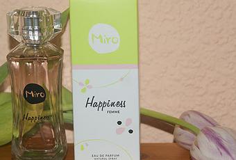 Miro Happiness Eau de Parfum beeinhaltet 50 ml und ist im Standard-Sortiment in Parfümerien und Drogerien erhältlich. Preislich liegt der Duft bei 11,95 €.