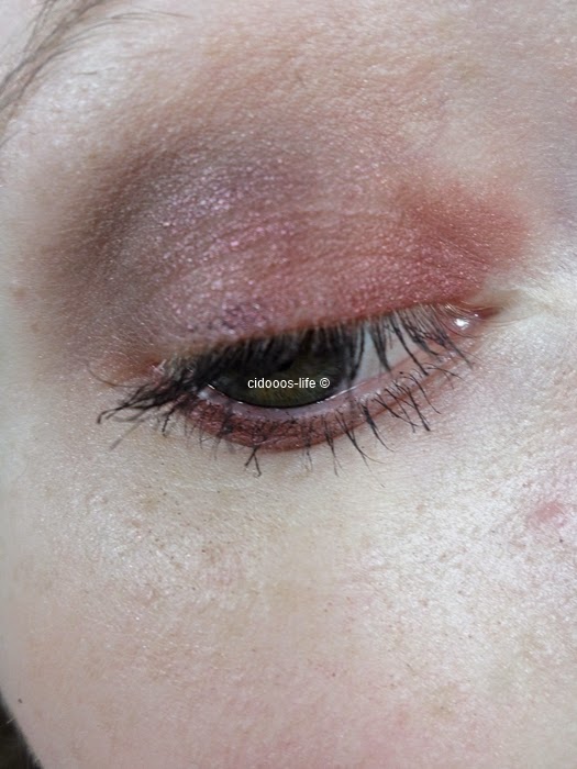 Ich habe den roten Lidschatten erstmal aufs komplette Lid gegeben, anschließend habe ich den braunen Ton in die Lidfalte aufgetragen und 'nach unten' aufs Lid verblendet und ein wenig ins äußere V gegeben :)