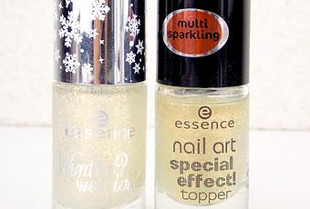 essence "Winter? wonderful!" LE 01 "A winter's tale"* Der Dupkandidat, nachdem ich für den "Swatch & erster Eindruck" - Beitrag die Bilder geschossen habe, ist mir die Ähnlichkeit der beiden Topper sofort aufgefallen. Ich habe diesen auch über schwarzem Nagellack lackiert und eine gewisse Ähnlichkeit mit dem Effekt besteht schon. Die Flakes haben nur eine andere Form und sind weniger gelb. Es handelt sich nicht um ein genaues Dupe, aber der Topper geht ganz klar in die Richtung von "night in vegas". Wer diesen nicht mehr bekommen hat oder so einen in der Art sucht, kann in dieser Limited Edition ohne Probleme zuschlagen.