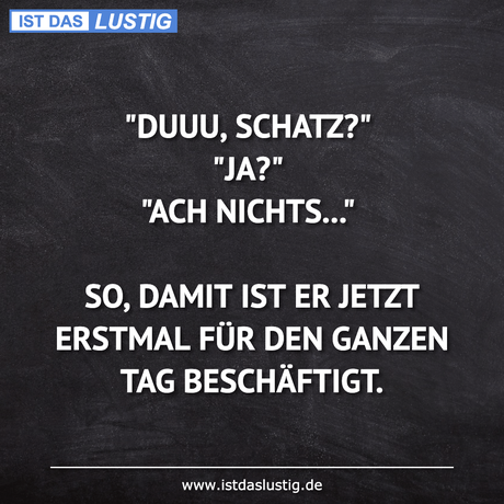 Auf Facebook teilen Vorige Folgende "DUUU, SCHATZ?" "JA?" "ACH NICHTS..." SO,... Autor des Artikels : istdaslustig Zum Original-Artikel "DUUU, SCHATZ?" "JA?" "ACH NICHTS..." SO, DAMIT IST ER JETZT ERSTMAL FÜR DEN GANZEN TAG BESCHÄFTIGT. Hier geht es zum Artikel Mehr Lustiges auf www.istdaslustig.de Auf Facebook teilen Vorige Folgende Das könnte Ihnen gefallen Mehr