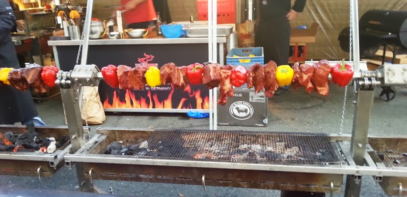 Die eat & Style in Köln fand vom 15.-17.11.2013 zum achten Mal in Köln statt und man konnte dort eine Mischung aus kulinarischen Erlebnissen (regionale & internationale Spezialitäten), Küchenneuheiten, Starköchen und Workshops zu diversen Themen erleben.Es gab einiges zu entdecken, denn es waren nicht nur große, bekannte Marken hier vertreten, sondern auch kleinere Anbieter, deren Leckereien zum Probieren angeboten wurden.Die Messe war in Halle 6 aufgebaut und zusätzlich gab es einen Außenbereich, der dem Thema Grillen gewidmet war.Besonders dieser Grillspieß hatte es meinem Zwerg sehr angetan, da unsere Familie ja auch zu den Ganzjahresgrillern angehört :-)