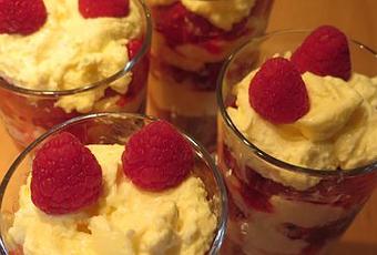 Einmal Creme , einmal Himbeeren , bis euer Glas voll ist .