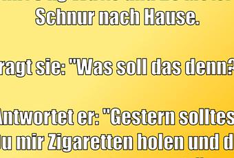 Antwortet er: "Gestern solltest Du mir Zigaretten holen und du brachtest mir Tabak und Blättchen. Nun schau, dass du klar kommst und roll sie dir selbst"