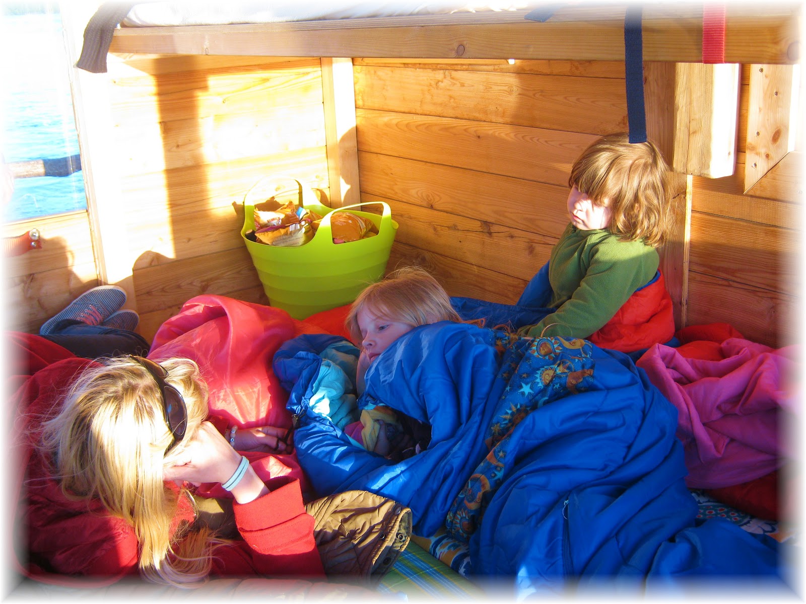 Für einen Tag und eine Nacht war ein Floß unser Zuhause, mit dem wir über heimische Gewässer schipperten. Das wichtigste Kleidungsstück der Kleinsten war an diesen Tagen die Schwimmweste, denn das Floß bot keinerlei Geländer o.ä....Vielleicht ein wenig eng, aber gemütlich schliefen wir (Erwachsene und Kleinkinder) mal richtig aus; für die beiden Großen hätte es wohl noch ein paar Stündchen länger sein können!;)